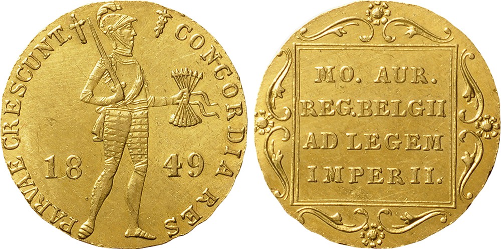 Gouden dukaat 1849. Sch.563. Prachtig.