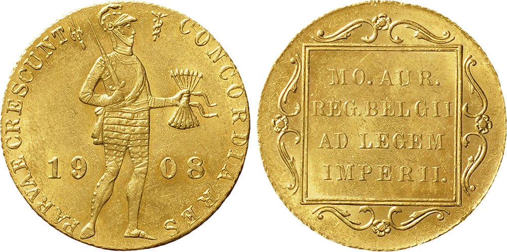 Gouden dukaat 1908. Sch.762. UNC.