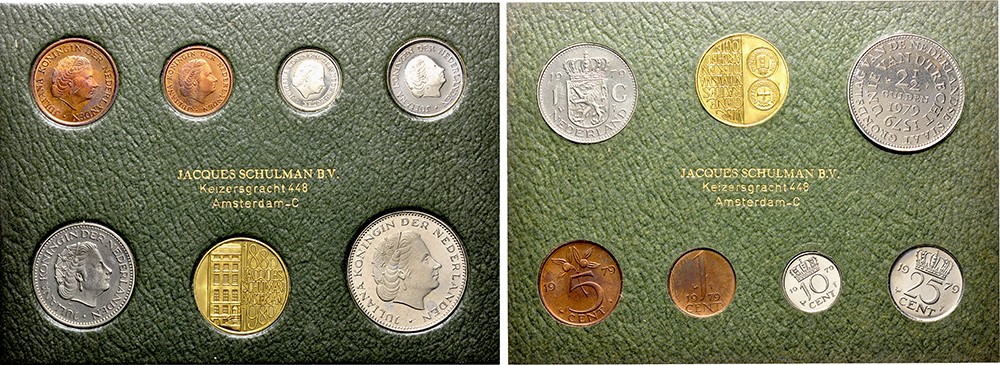 Schulman muntset 1979 met 1,5,10,25 cent en 1 en 2 1/2 gulden 1979 + jubileumpenning. FDC.