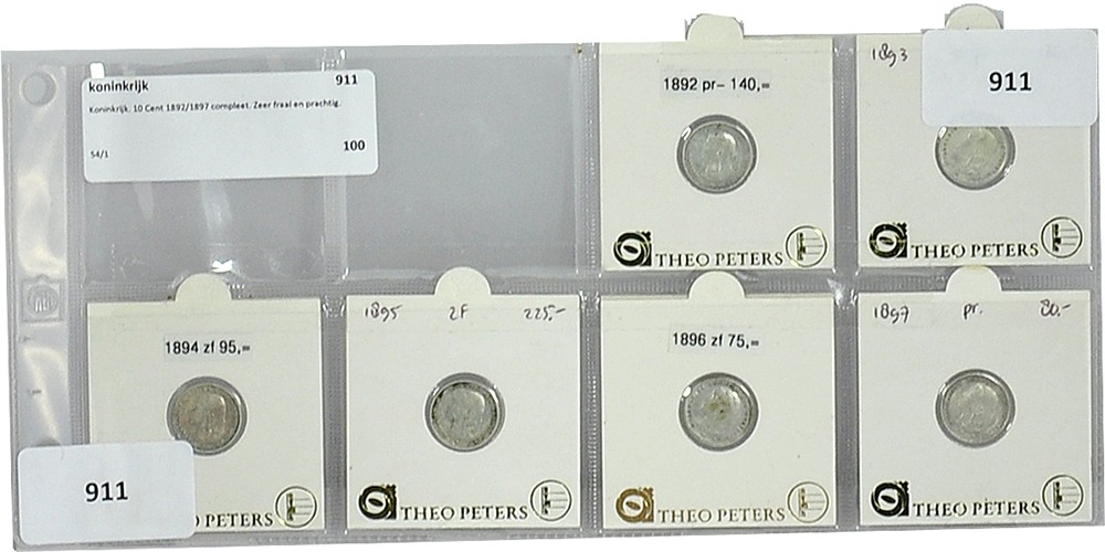 Koninkrijk. 10 Cent 1892/1897 compleet. Zeer fraai en prachtig.