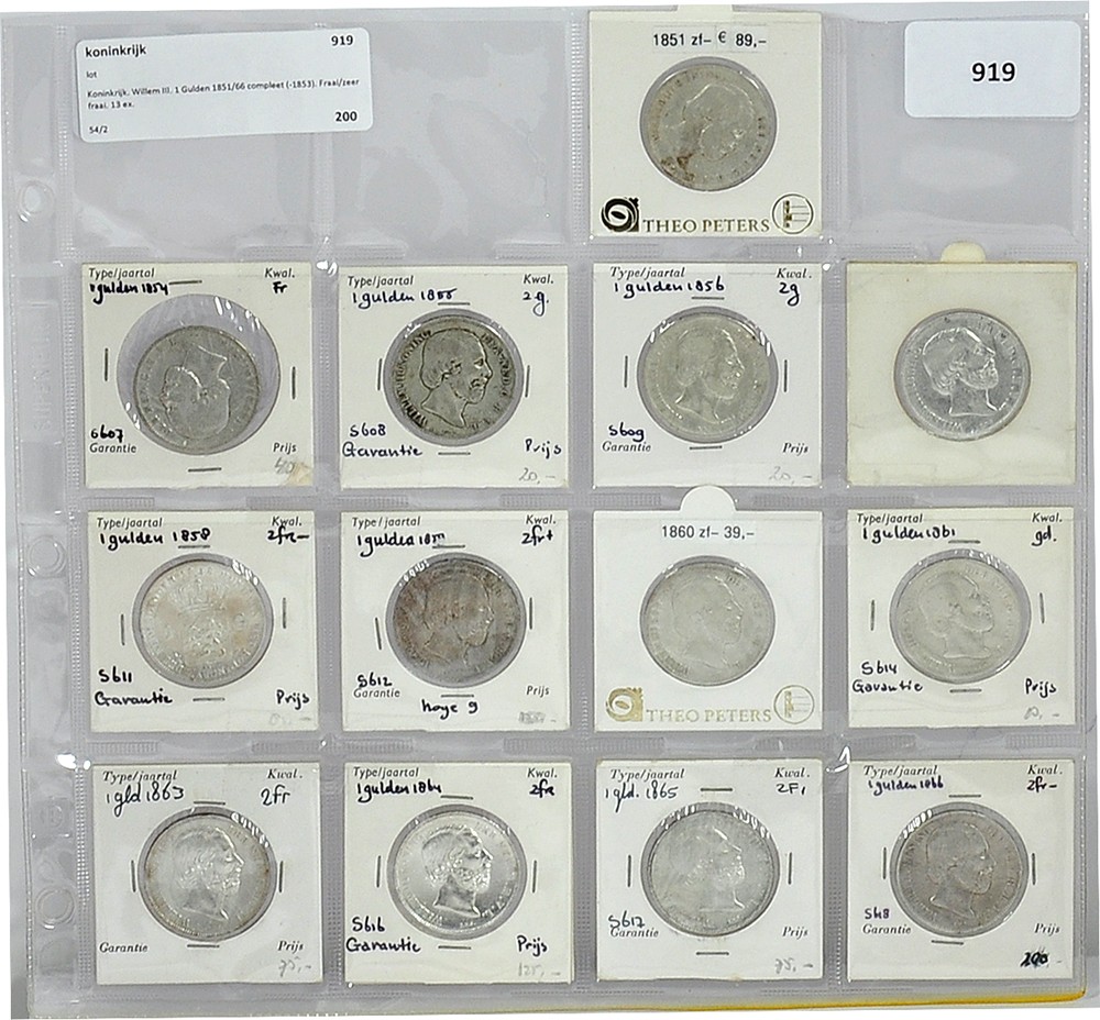 Koninkrijk. Willem III. 1 Gulden 1851/66 compleet (-1853). Fraai/zeer fraai. 13 ex.