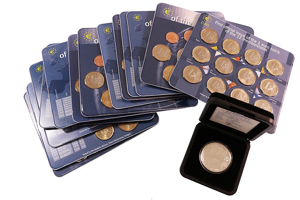 Eurocoins 12 countries, set 12x 1 euro and 10 euro silver 2002.