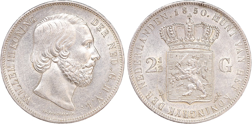 2 1/2 Gulden 1850. Prachtig+.