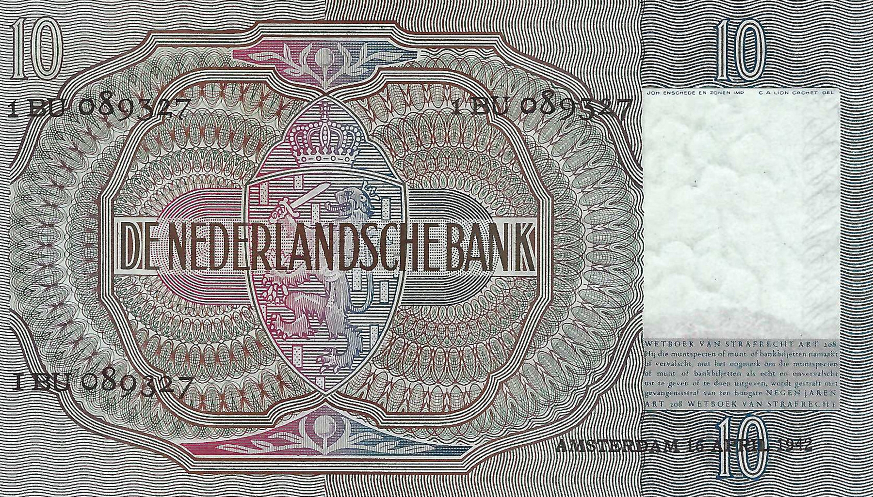 Netherlands. 10 Gulden 1940 II bankbiljet. Alm. 42-2. UNC.
