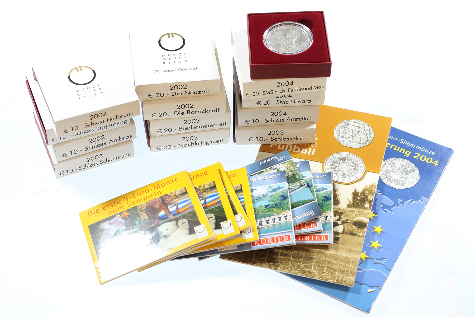 Austria. 2002/2004. 5 Euro silver BU(10), 10 euro silver PP(6), 20 euro silver PP(6). 22 pcs.