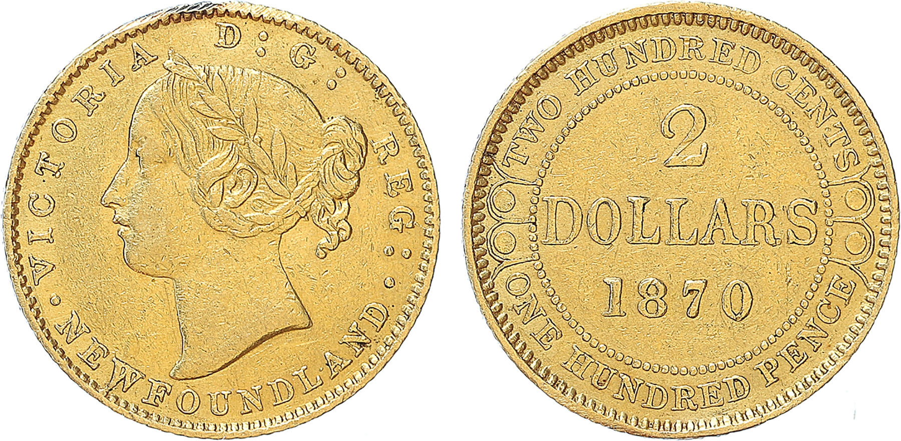 Canada New-Foundland. 2 Dollars gold 1870. KM 5. Mounted VF.