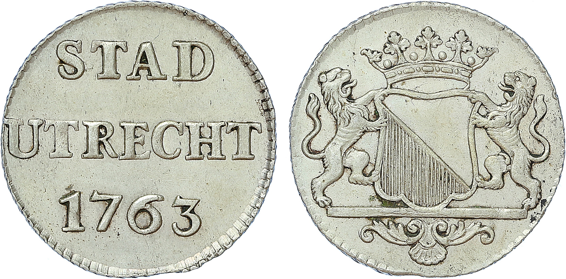 Netherlands. Utrecht-stad. Duit zilver 1763. CNM 2.44.22. Ca. prachtig.