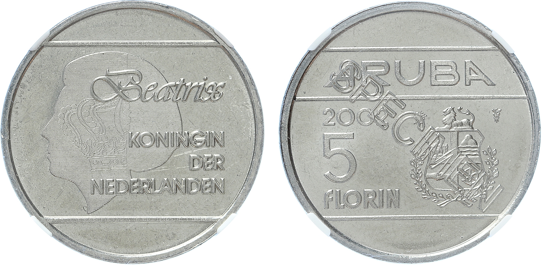 Aruba. 5 Florin 2002. SPECIMEN. Oplage slechts cq. 100 ex. NGC SP 66.