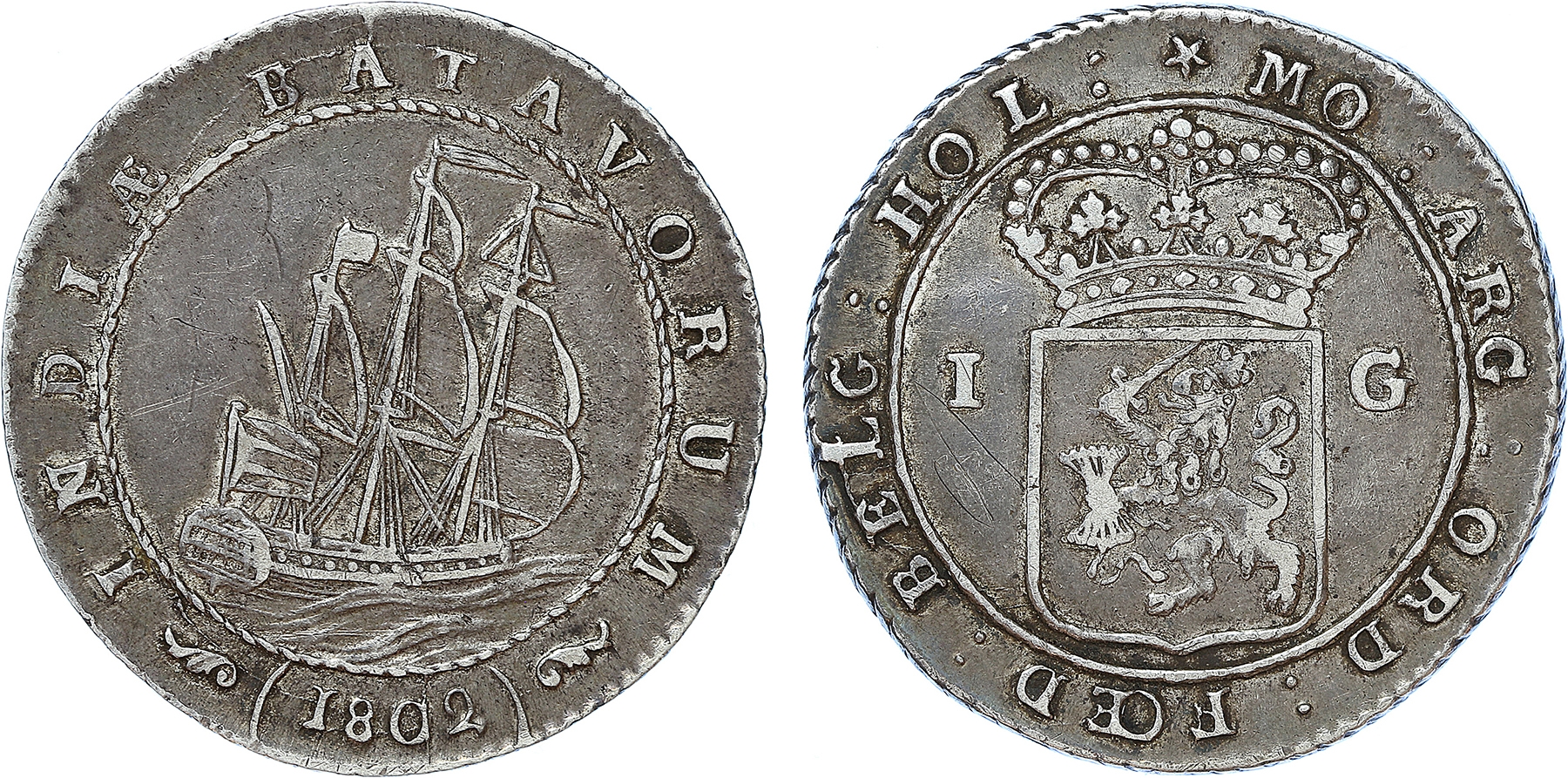 Nederlands Indië. Bataafse Republiek. Scheepjesgulden 1802. Scho.488. Zeer fraai-.