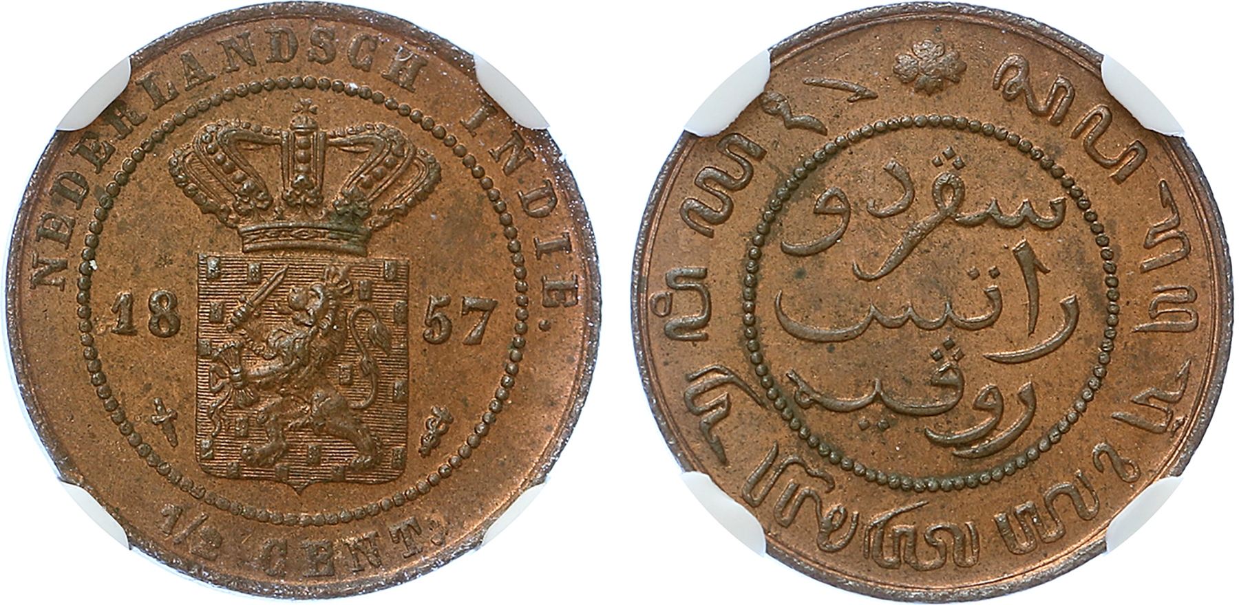 Nederlands Indië. 1/2 Cent 1857. Mogelijk met gepolijste stempels geslagen. NGC MS 64 RB.