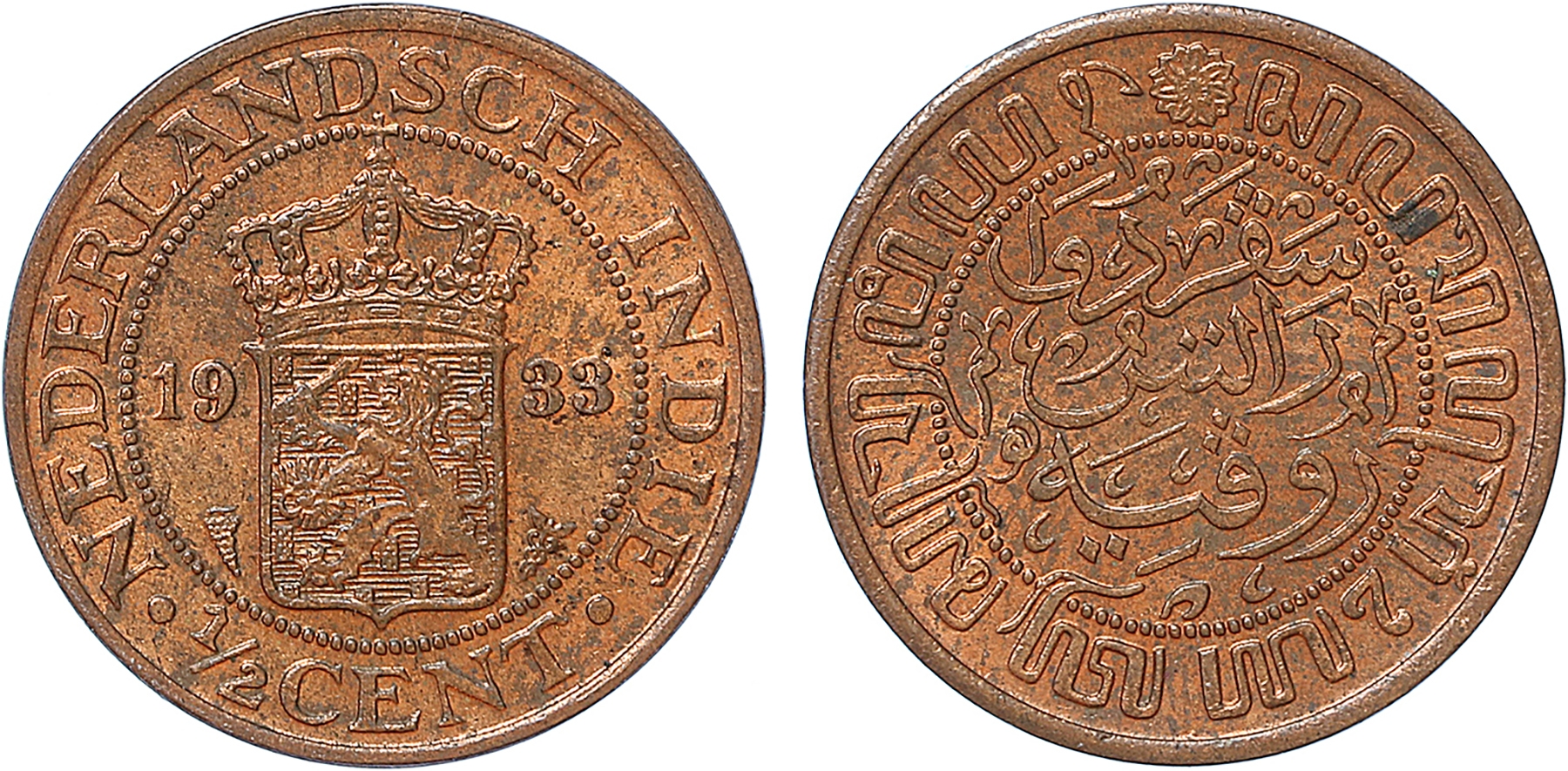 Nederlands Indië. 1/2 Cent 1933. Mmt. Druiventros. Mogelijk met gepolijste stempels geslagen. FDC.