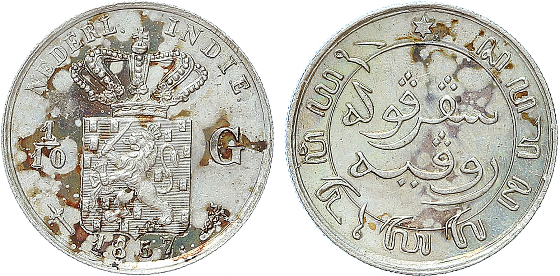 Nederlands Indië. 1/10 Gulden 1857. Mogelijk met gepolijste stempels geslagen. FDC.