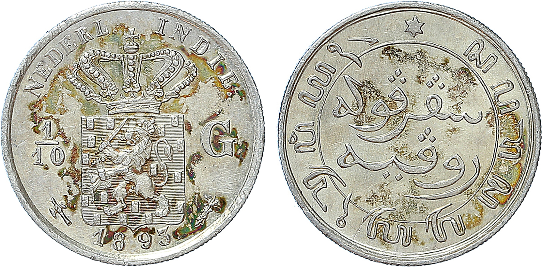 Nederlands Indië. 1/10 Gulden 1893/85. Mogelijk met gepolijste stempels geslagen. FDC.