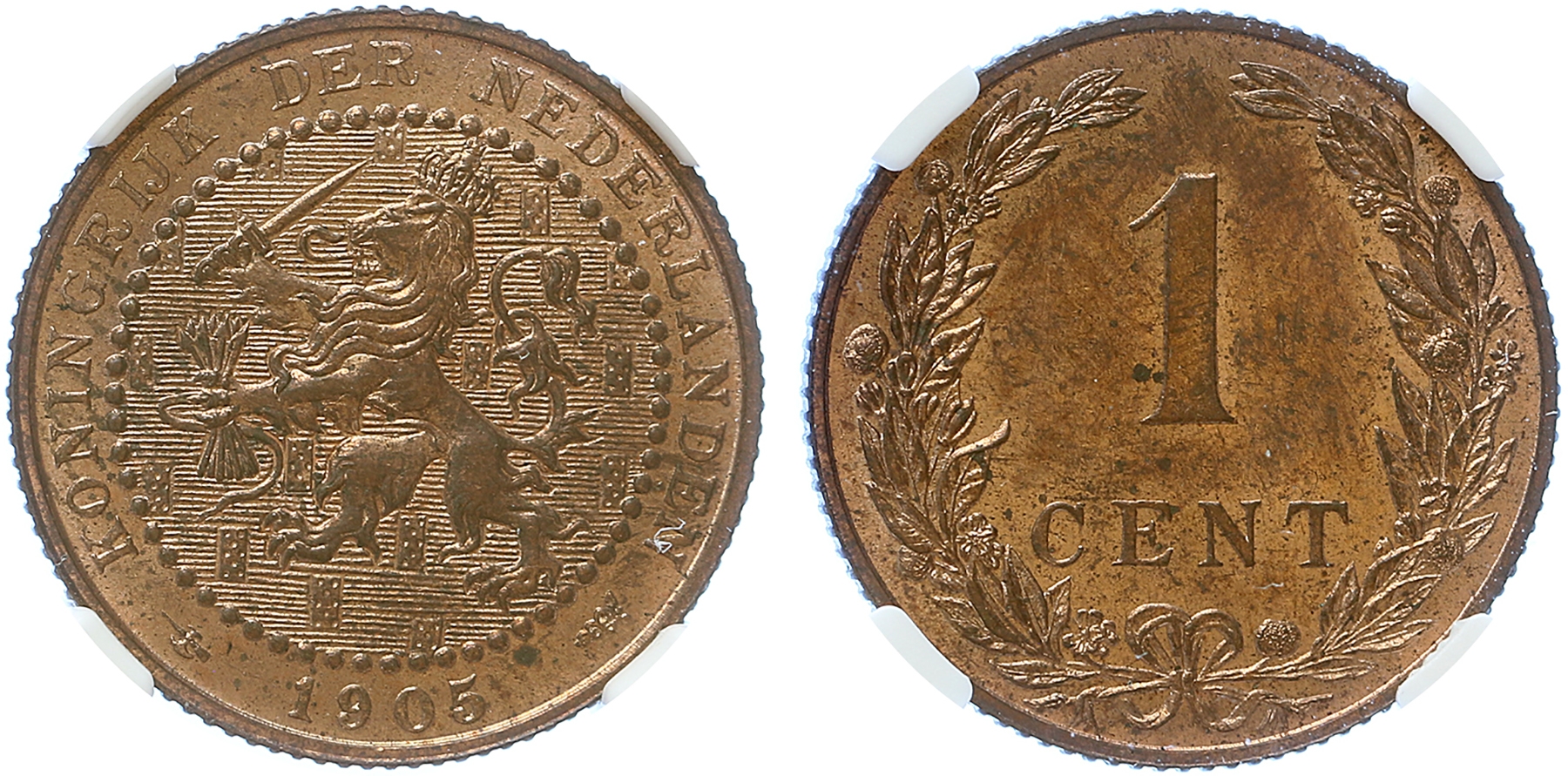 Netherlands. 1 Cent 1905. NGC MS 65 RB.