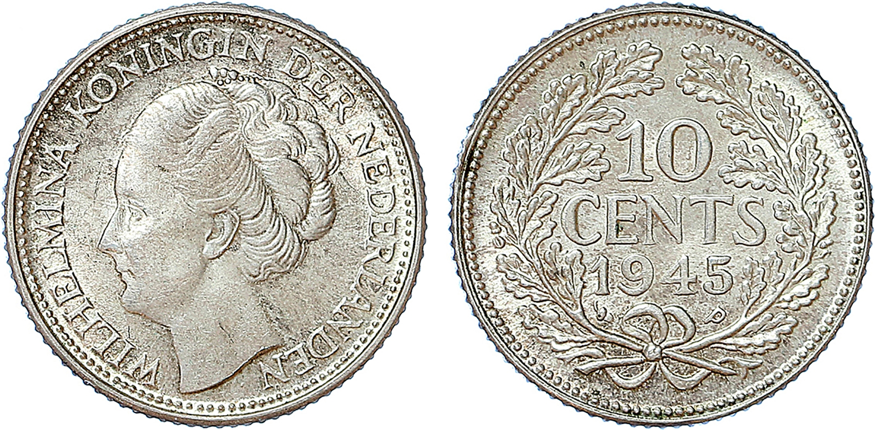 Netherlands. 10 Cent 1945Pe. Prachtig/FDC.