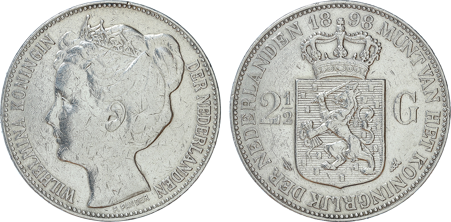 Netherlands. 2 1/2 Gulden 1898a. Met punt tussen P en Pander. Zeer fraai.
