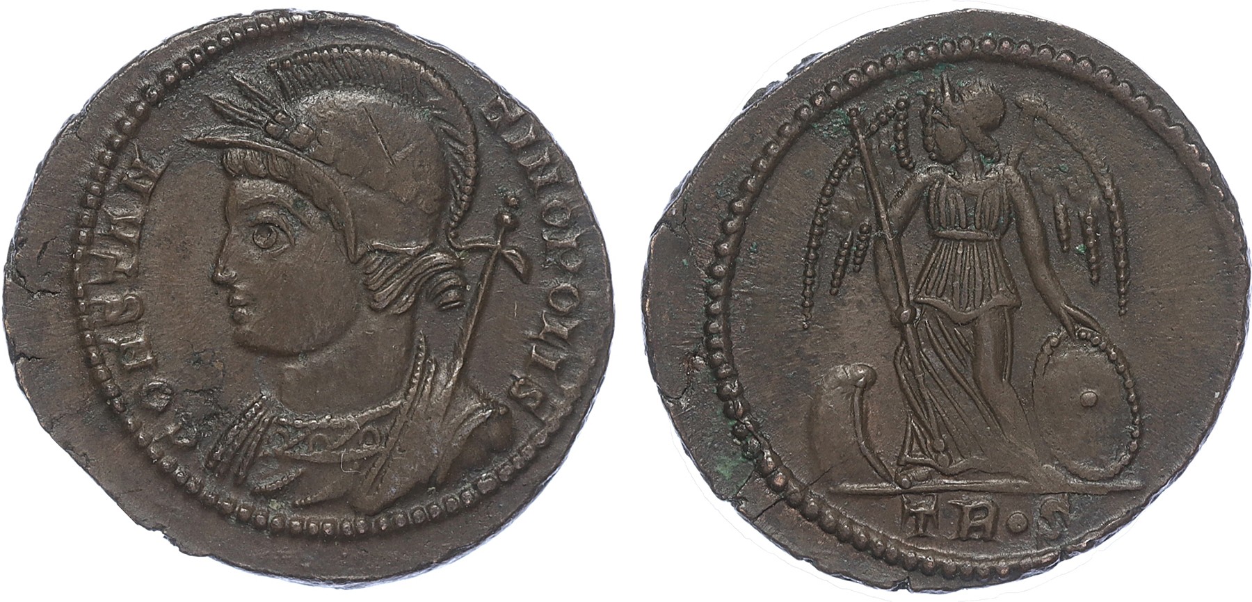 Constantinus I (Constantinopolis) - AE Follis (Treveri AD 332 - 333, 1,99g). Coh. -; RIC 543. a.XF/XF. Ex. Elsen A 95/266