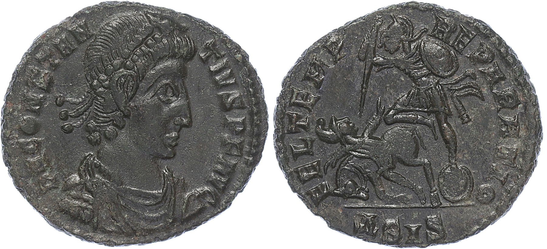 Constantius II (AD 337-361) - AE Follis (Siscia AD 351 - 355, 2,61g). RIC 350. a.XF. Ex. Elsen L 263/270