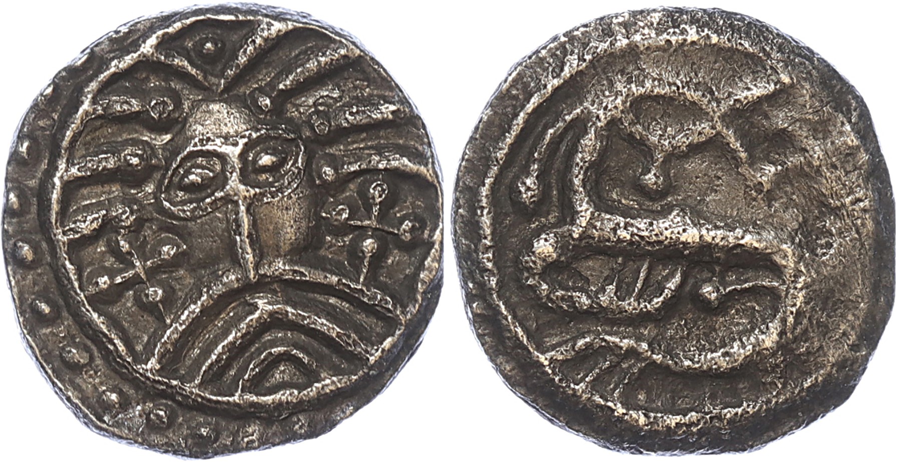 Friese gebieden. AR Sceatta Wodan/Monstertype. vdCh. 4.31. Zeer fraai/prachtig. Ex. Henzen L 172/1035