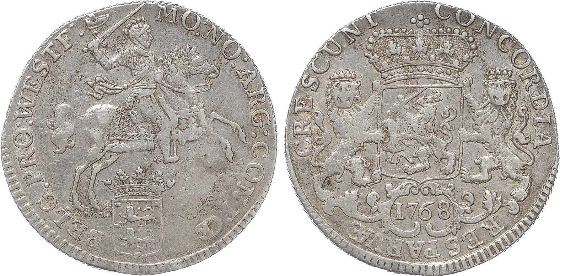 West-Friesland. Halve dukaton of halve zilveren rijder 1768/67. Cnm 2.46.45; D. 1050. Zeer fraai+.