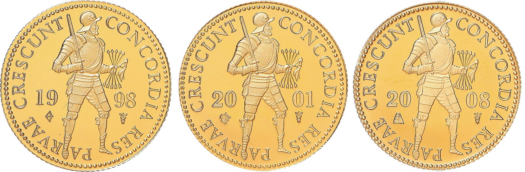 Gouden dukaat 1998, 2001, 2008. Proof. 3 ex.