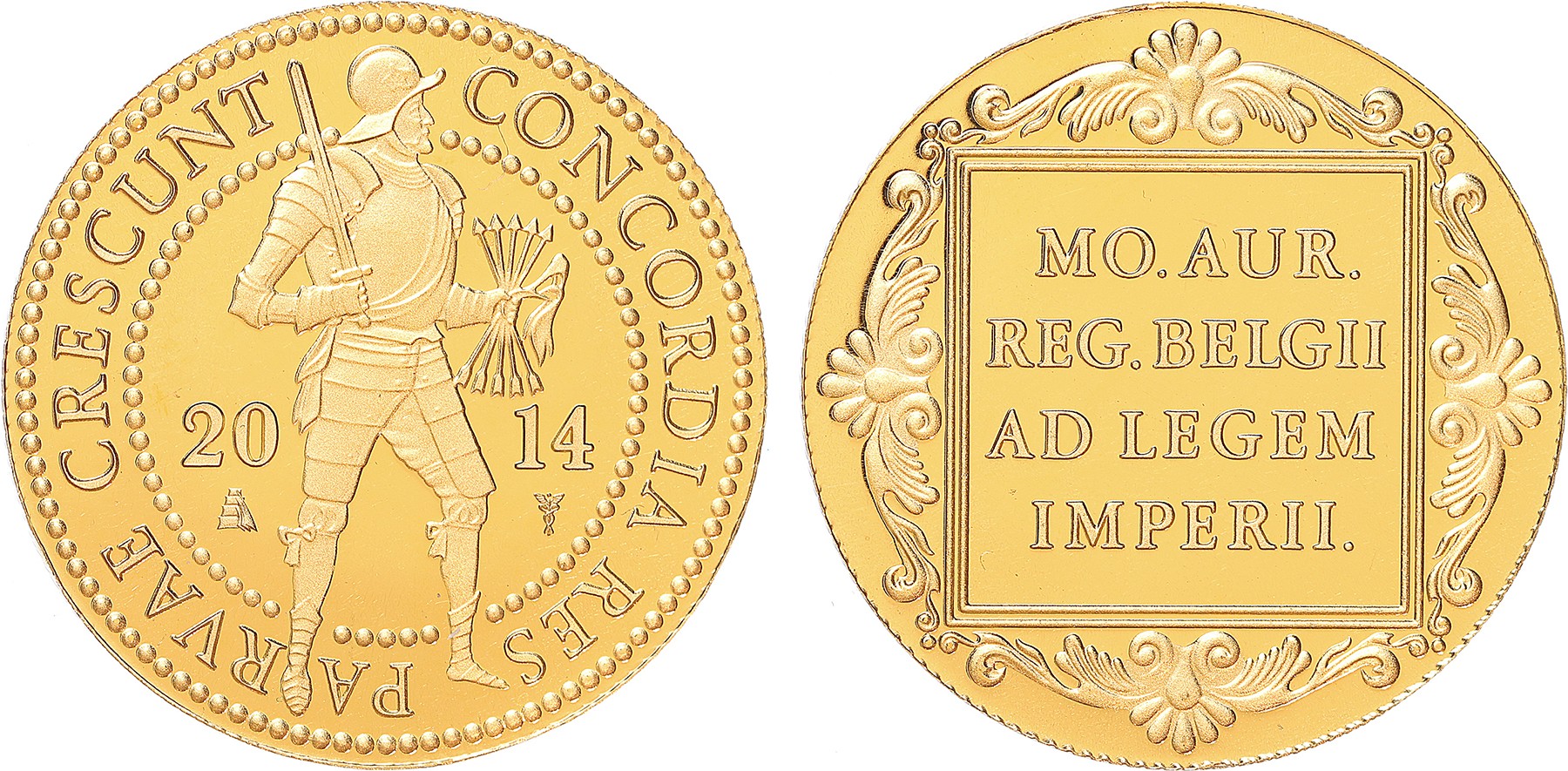 Dubbele gouden dukaat 2014. Proof in cassette.
