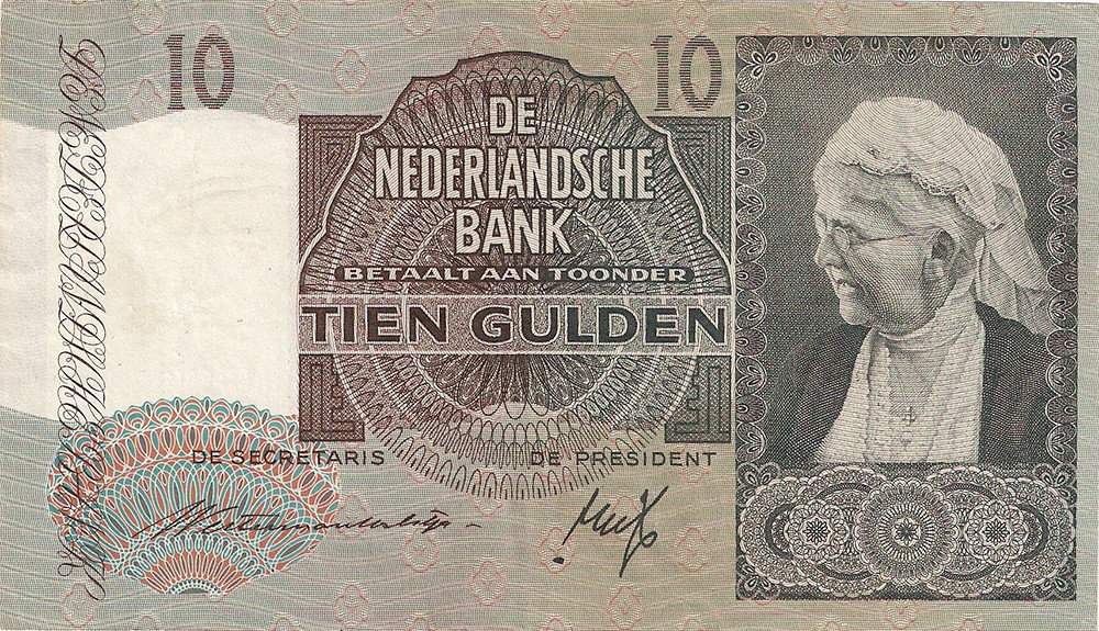 10 Gulden 1940-I bankbiljet. Alm.41-1. Prachtig.