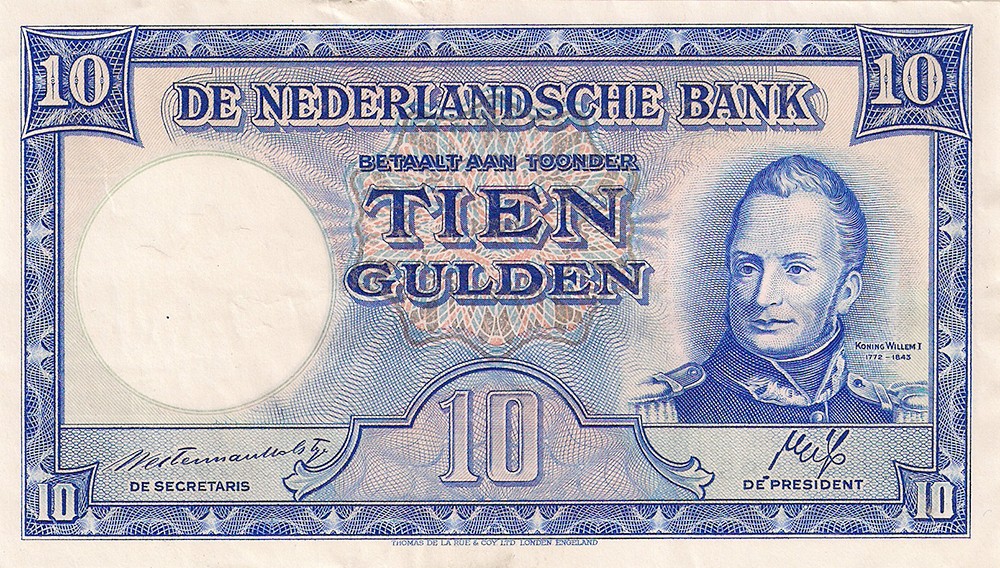10 Gulden 1945-II bankbiljet. Alm. 46-1. Prachtig.