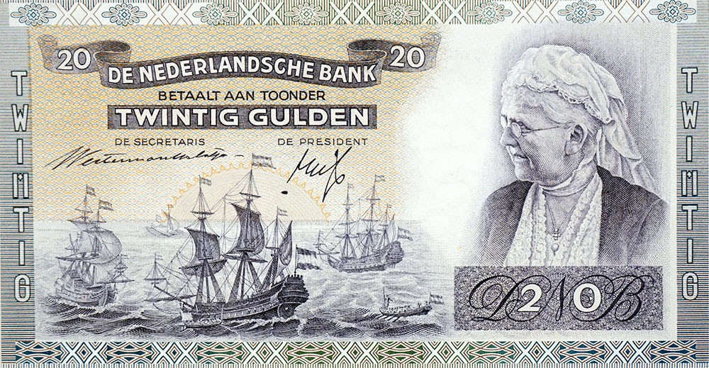 20 Gulden 1945 bankbiljet. Alm. 59-1. Ca. zeer fraai.