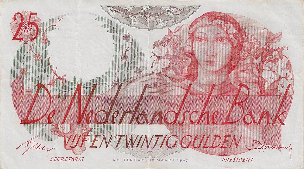 25 Gulden 1947 bankbiljet. Alm. 81-1. Zeer fraai/prachtig.