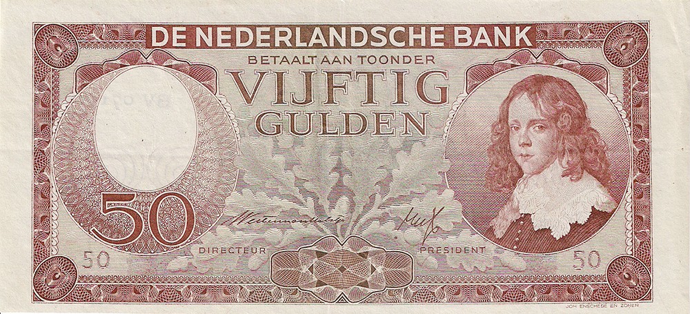 50 Gulden 1945 bankbiljet. Alm. 99-1. Ca. prachtig.