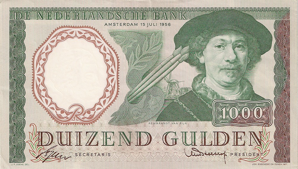 1000 Gulden 1956 bankbiljet. Alm. 154-1. Vrijwel UNC.