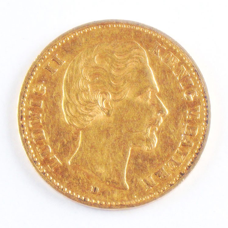 German States. Bavaria. 5 Mark gold 1877. KM 904. VF+.