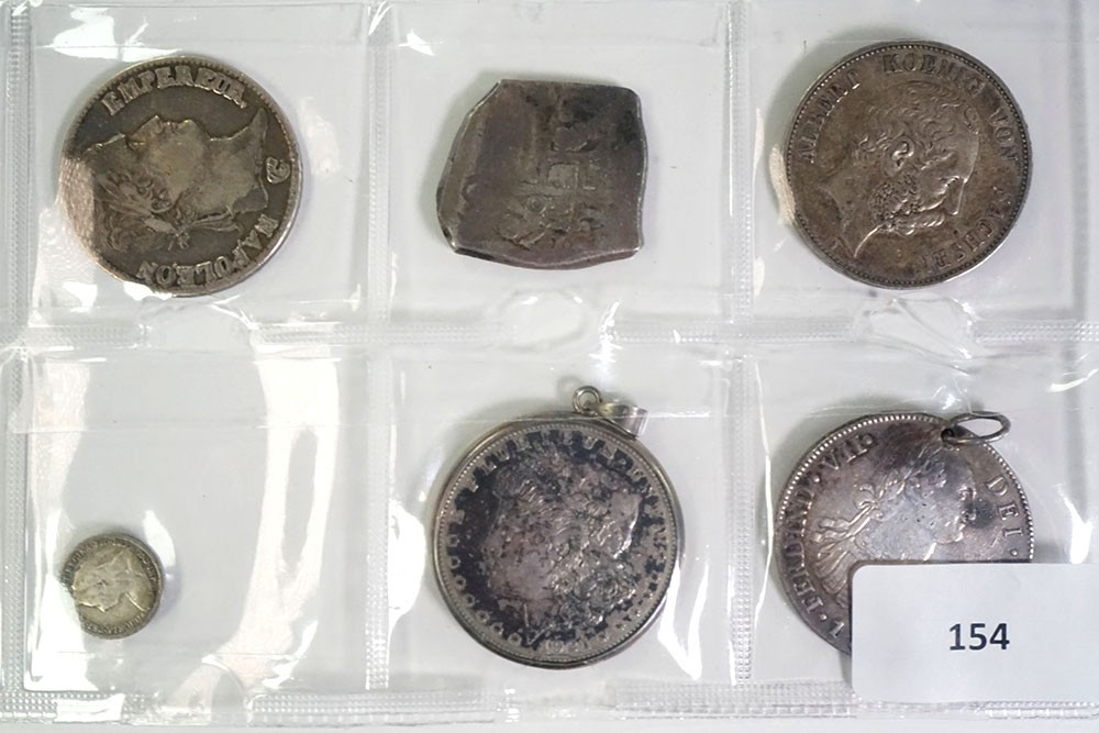 World. Lot foreign silver coins including France Napoleon 5 Francs 1813M; Spanish silver cob. 6 ex.