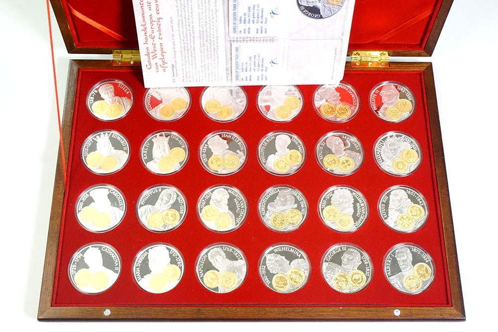 Ned. Antillen. 10 Gulden zilver met goud 2001. Complete set handelsmunten in cassette.