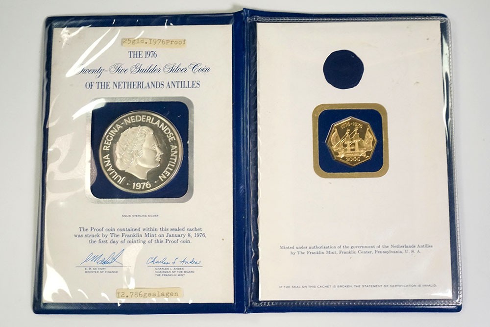 Ned. Antillen. 200 Gulden goud en 25 gulden zilver 1976. Proof.