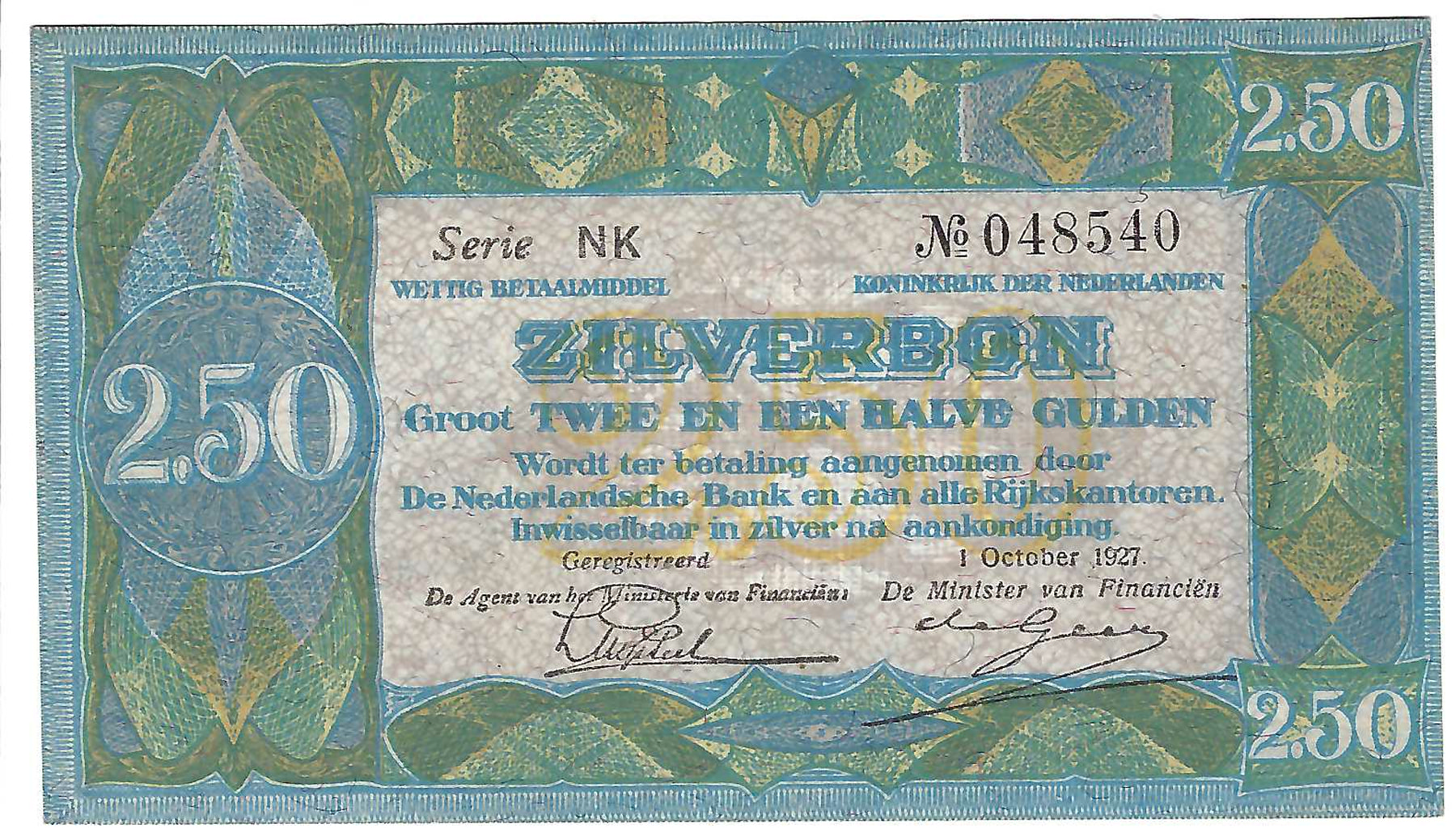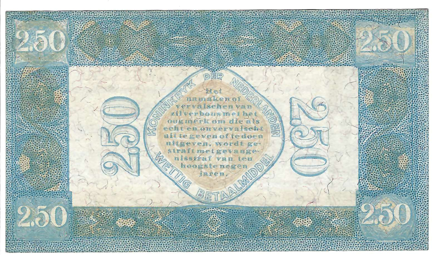 2 1/2 Gulden 1922 zilverbon. Alm. 12-4. Prachtig.
