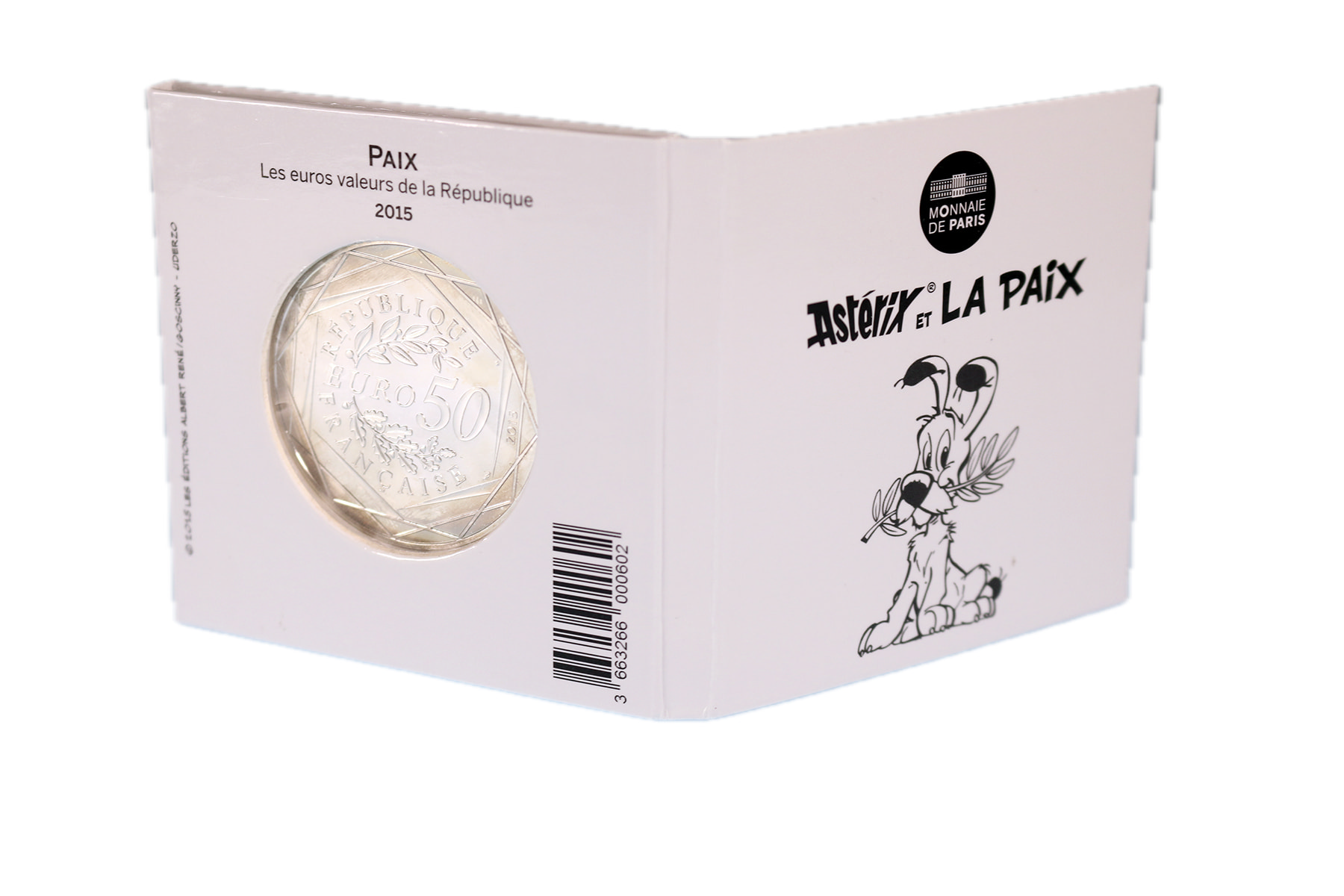 France. 50 euro silver 2015. Asterix et la Paix-Idefix.