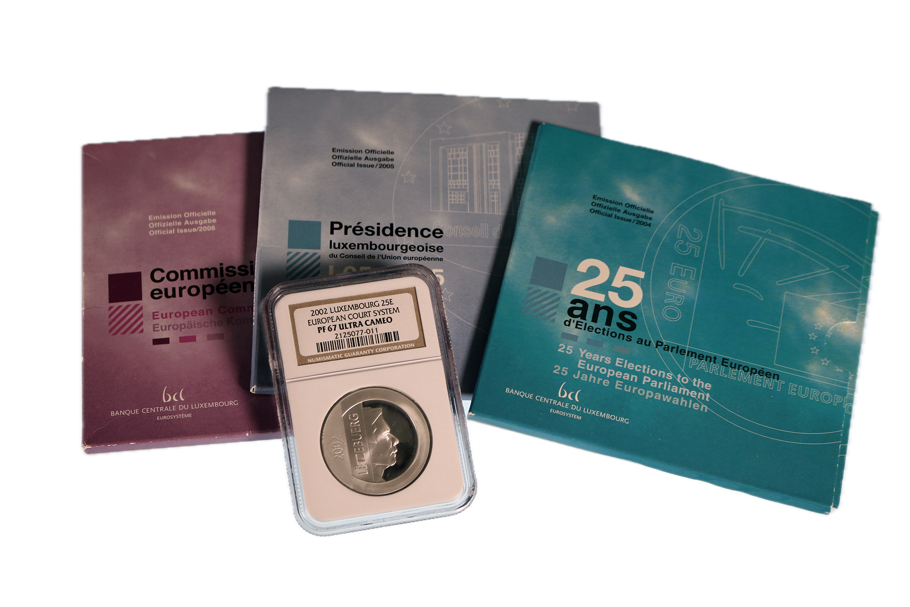 Luxembourg. 25 Euro commemoratives 2002 in NGC holder PF67; 2004, 2005, 2006 blister. 4 pcs.
