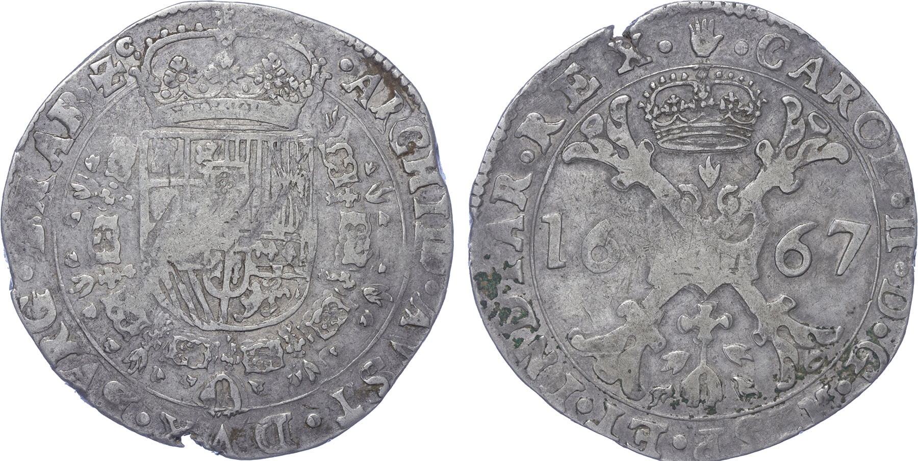 Antwerpen. Karel II (1665-1700). Patagon 1667. VH 698; D. 342. Fraai/zeer fraai.