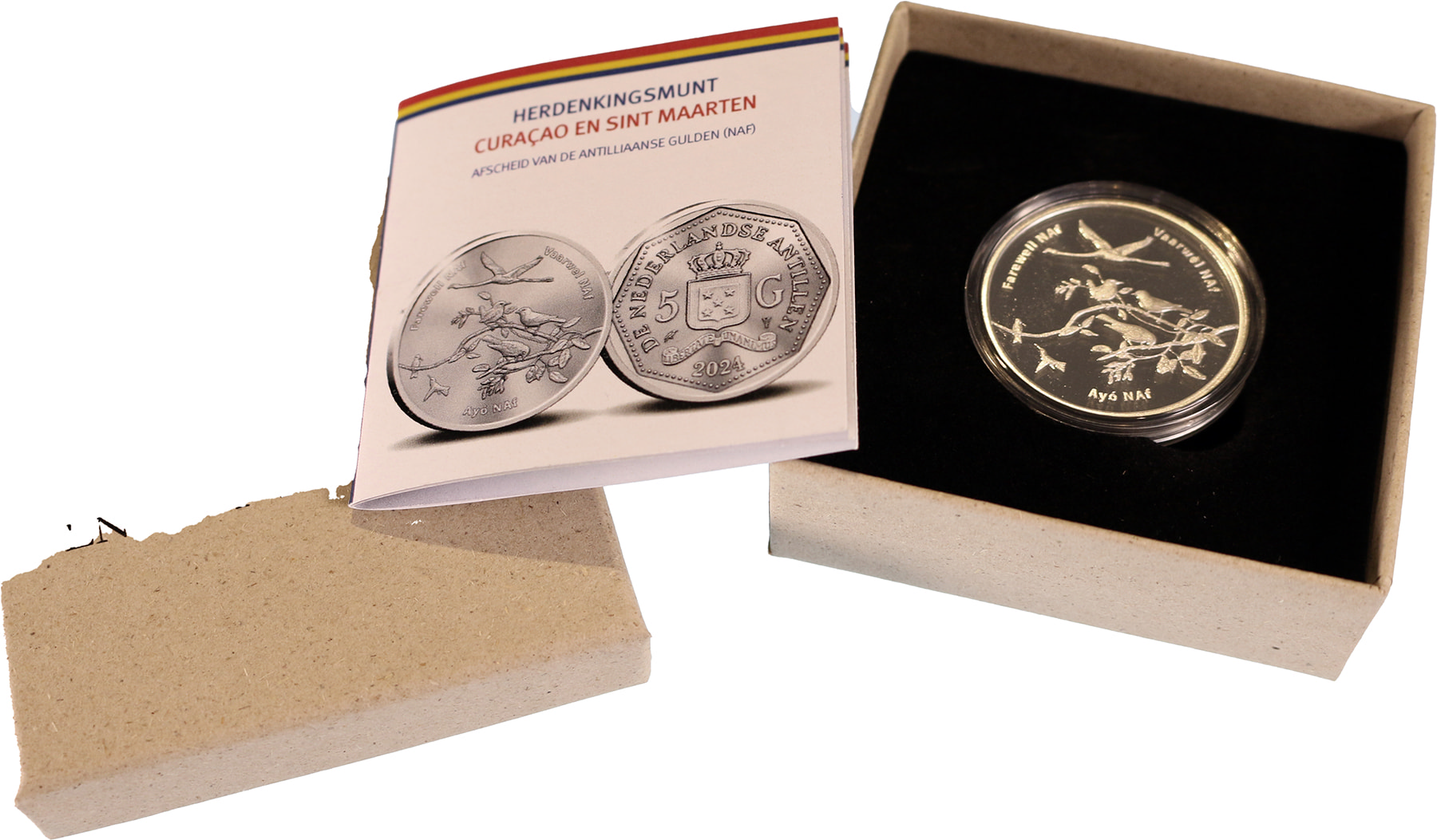 Nederlandse Antillen. 5 Gulden zilver 2024. Afscheid NAG. Proof in cassette.