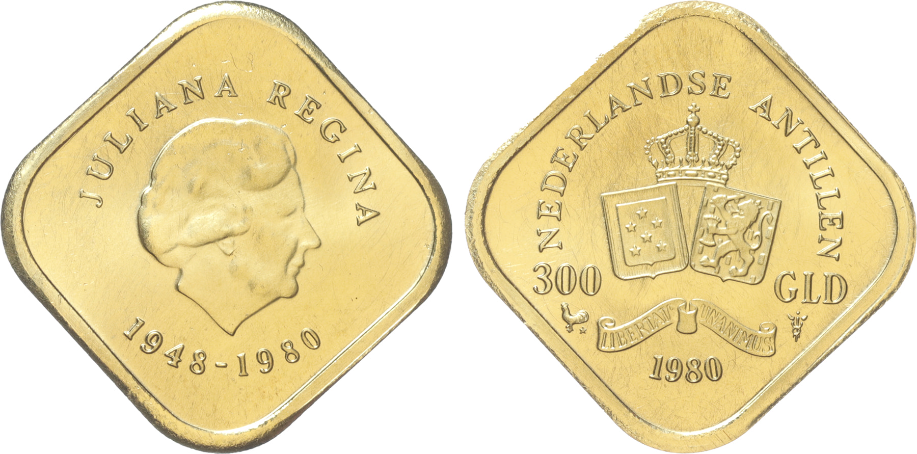 Nederlandse Antillen. 300 Gulden goud 1980. Juliana. UNC.