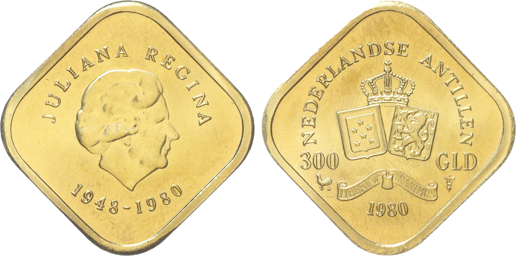 Nederlandse Antillen. 300 Gulden goud 1980. Juliana. UNC.