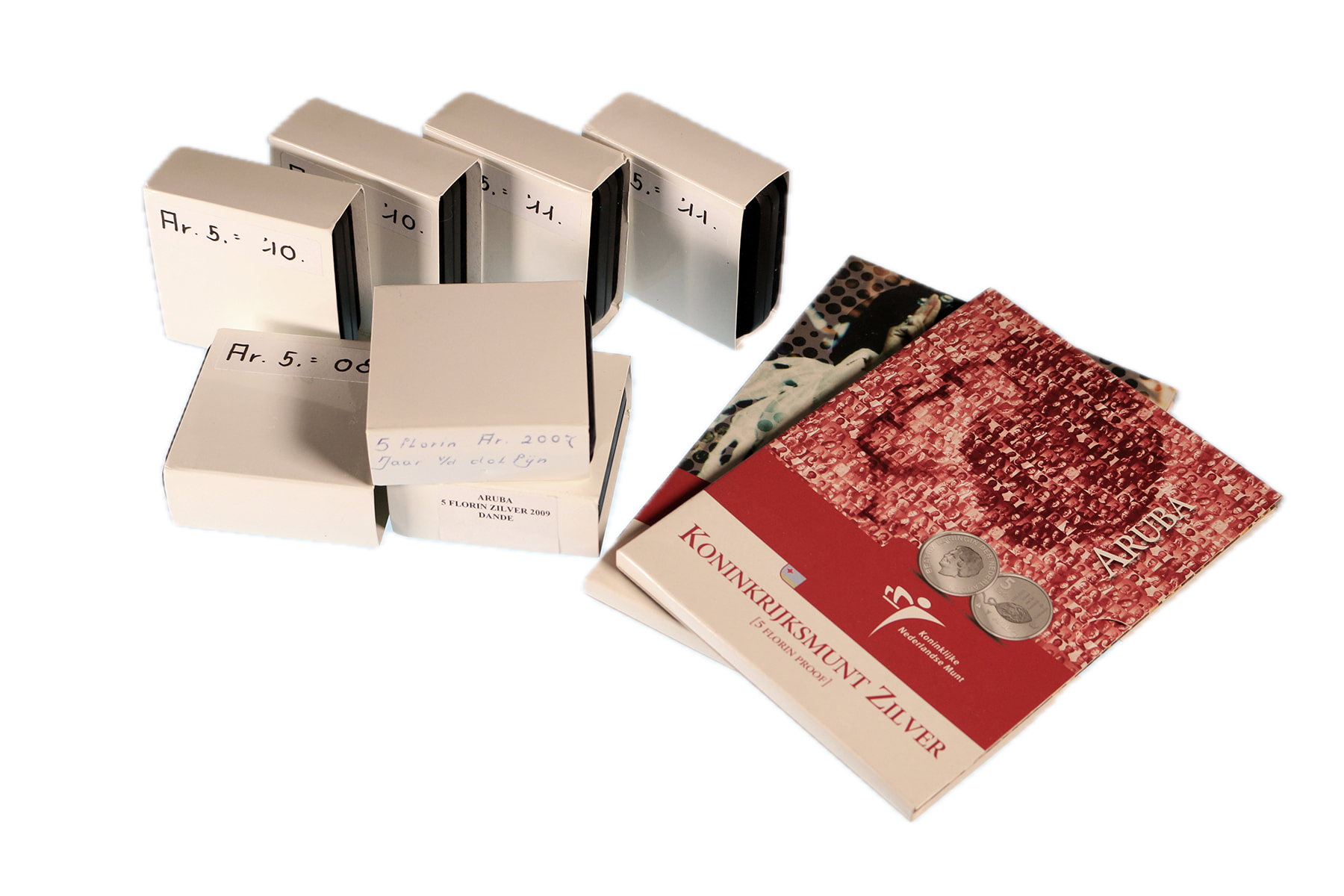 Aruba. 5 Florin zilver 2004/2011. Proof in cassette. 9 ex.