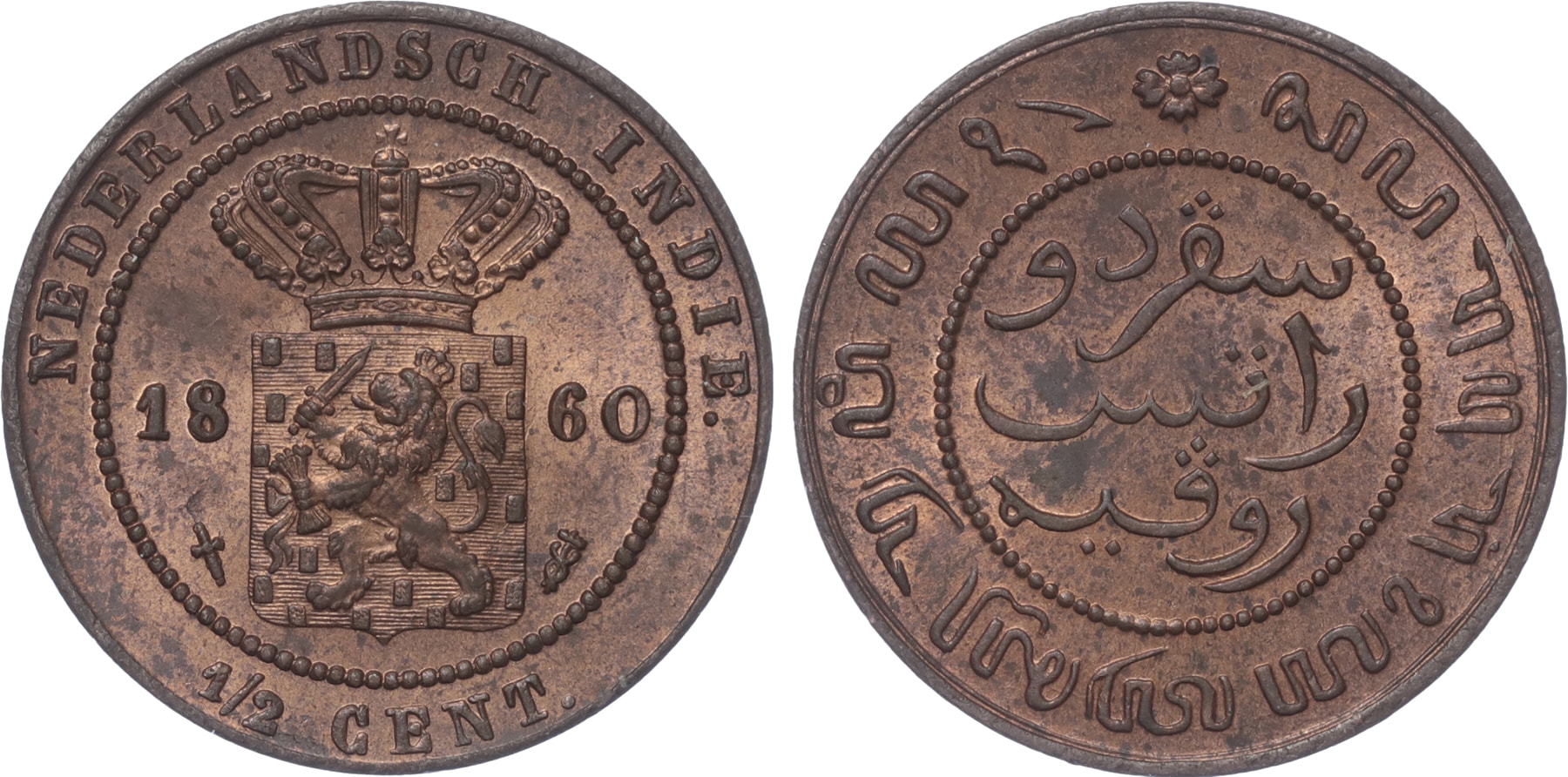 Nederlands Indië. 1/2 Cent 1860. FDC. Originele muntkleur.