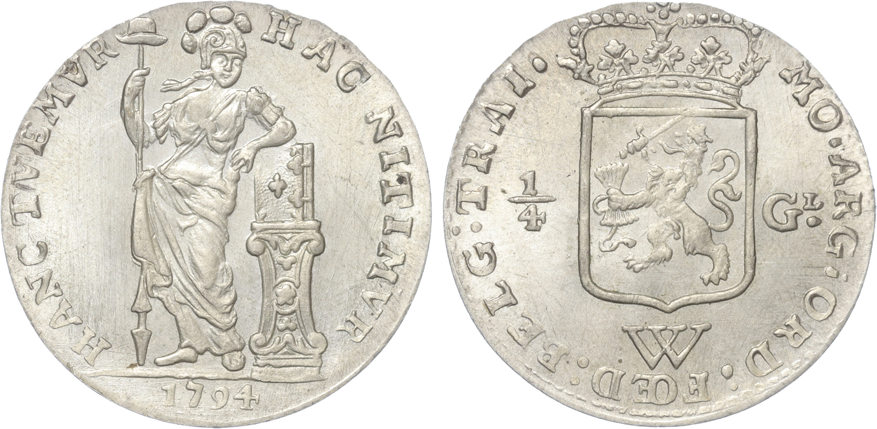 Nederlands West-Indië. 1/4 Gulden 1794. Scho. 1355. FDC. Mooie zachte zilverkleur.