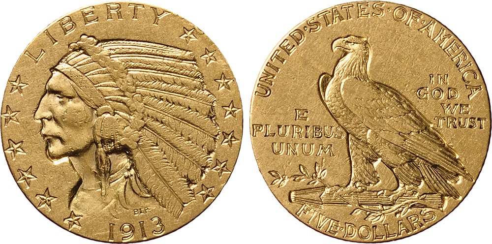 USA. 5 dollars gold 1913. VF/XF.