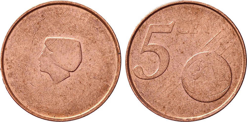 5 Cent 2001. Zwak geslagen, omschrift nauwelijks zichtbaar.