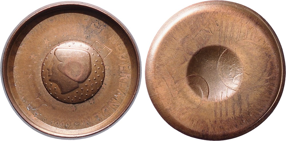 50 Cent 1999. Op veel te dun muntplaatje, waardoor een soort 3D munt is ontstaan. 4,01 gr. Leuk!