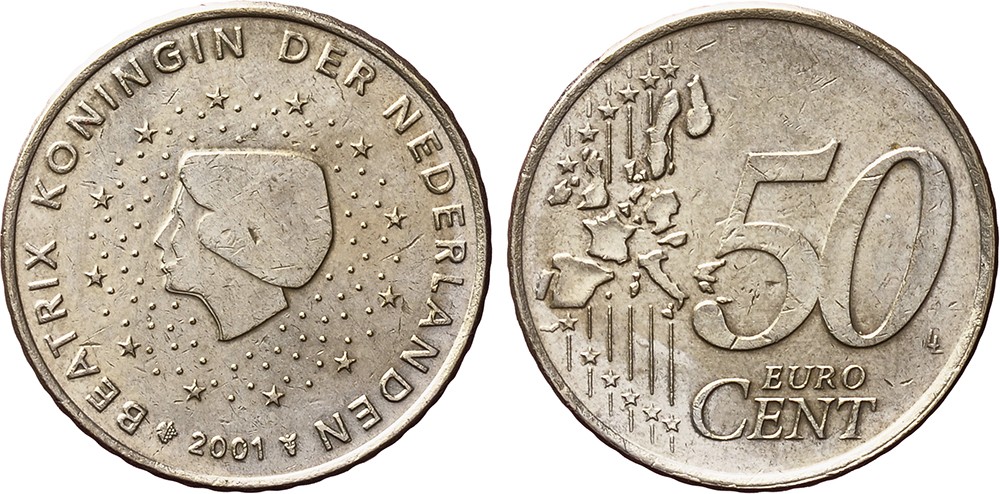 50 Cent 2001. Geslagen in ander metaal, nikkel. 7,97 gr.